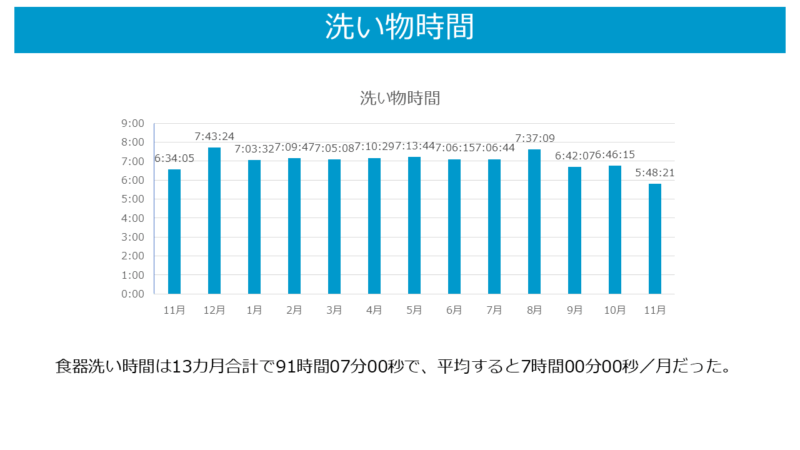 洗い物時間:5時間48分21秒(前月:6時間46分15秒)