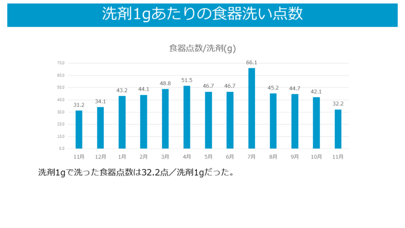 また、洗剤1gで何点の食器を洗えるか確認した結果も次の通りです。