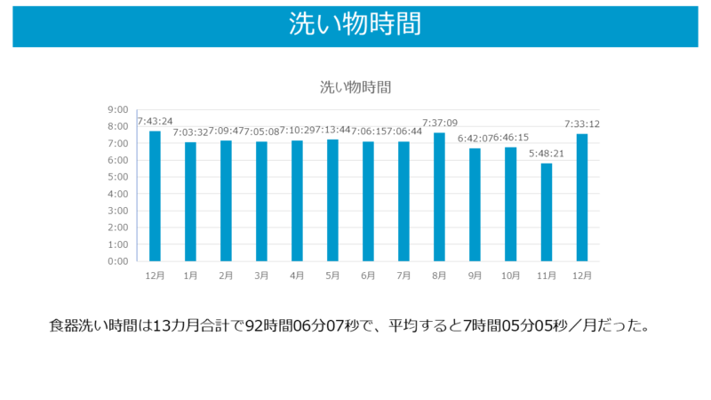 洗い物時間:7時間33分12秒(前月:5時間48分21秒)