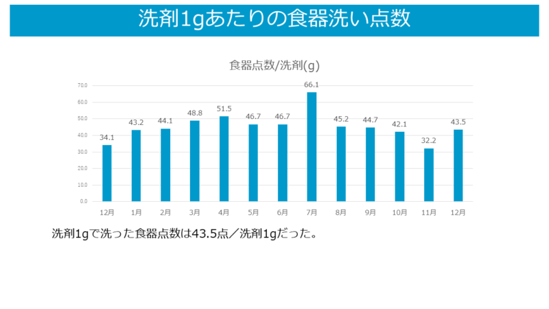 また、洗剤1gで何点の食器を洗えるか確認した結果も次の通りです。