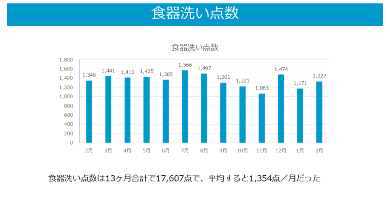 洗い物点数:1327点(前月:1171点)