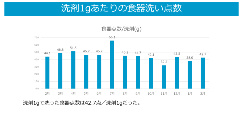 また、洗剤1gで何点の食器を洗えるか確認した結果も次の通りです。